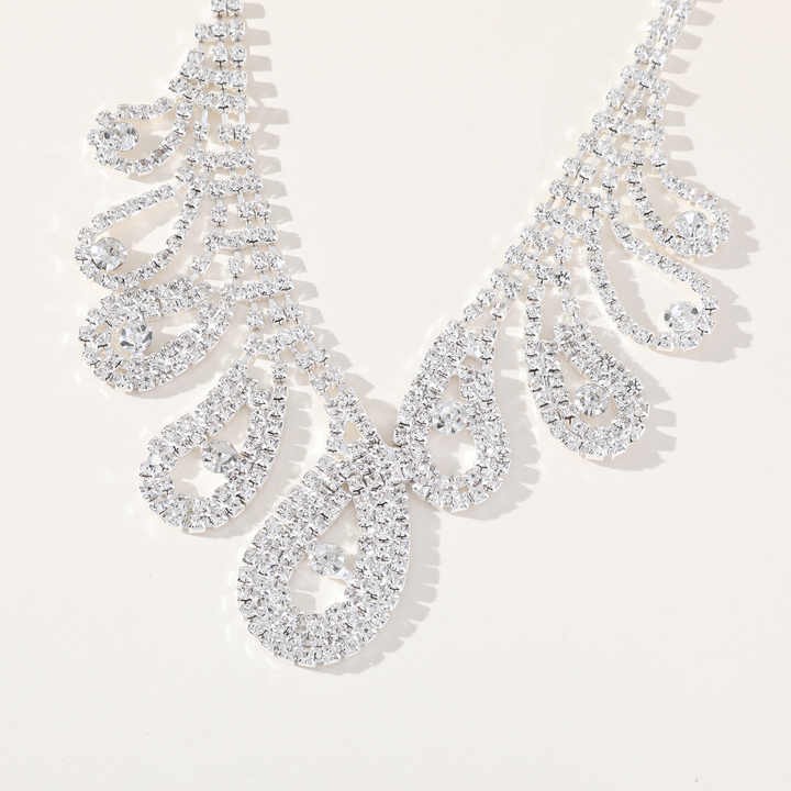Manna 2Pcs Bridal Diamond Necklace Earrings Jewelry Set Silver Wedding Crystal Necklace For Women